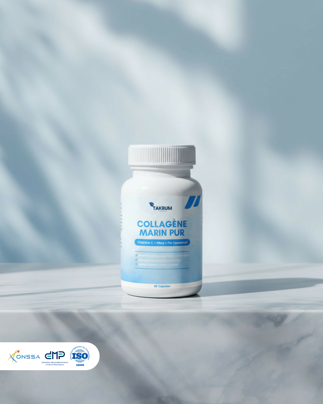 Le Collagène Marin Pur TAKRUM a été spécialement formulé pour ralentir ces effets du temps.